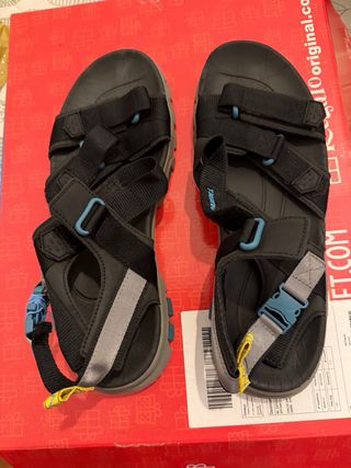 Sandalias de trekking nuevas, ideales para tus aventuras al aire libre, súper cómodas. Nuevas sin estrenar, con la etiqueta. Precio original 25€. Cierre de cordones con ajuste rápido. Suela de goma antideslizante. Diseño abierto para mayor transpiración y comodidad en verano. Hago lotes y después con otras cosas de mi perfil.