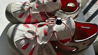 Sandalias deportivas SAGUARO, perfectas para actividades al aire libre. - Diseño abierto y transpirable. - Cierre de cordones elásticos con ajuste rápido. - Suela de goma para mayor agarre. - Combinación de colores blanco y detalles en rojo.