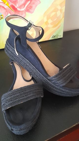 sandalias de cuña azul marino