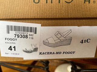 Sandalias cuña marca Unisa. Color verde caqui. Las tiras son de piel y ante. Se han utilizado muy pocas veces (2), como se puede comprobar las suelas en la imagen. Pongo foto de lo que me costaron. Puestas, quedan muy bonitas.Talla 40