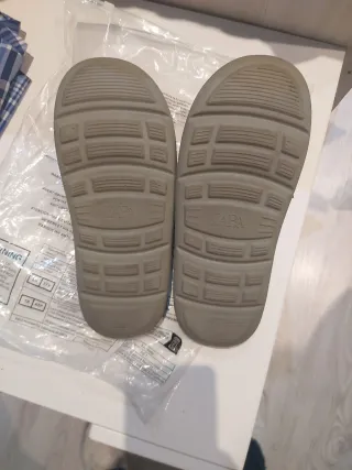 Sandalias Zara en color negro, talla 45. Tienen un solo uso y están en muy buen estado. Únicamente presentan un ligero arañazo casi inapreciable en uno de los laterales, que se puede ver en detalle en una de las fotos. Por lo demás, están prácticamente nuevas. Cómodas y fáciles de combinar para verano.