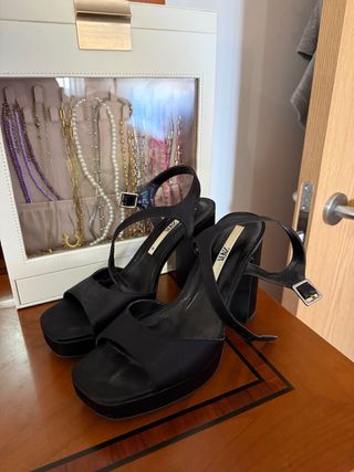 Elegantes tacones de Zara con plataforma. - Diseño de tiras. - Cierre de pulsera al tobillo. - Tacón grueso. - Material de ante.
