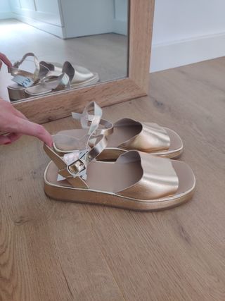 Sandalias doradas de Zara Talla 37 Nuevas con etiqueta