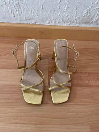sandalias Zara color dorado n.36 solo puestas una vez para una boda
