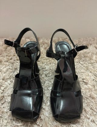 Tacones o sandalias de tacon negras de charol
