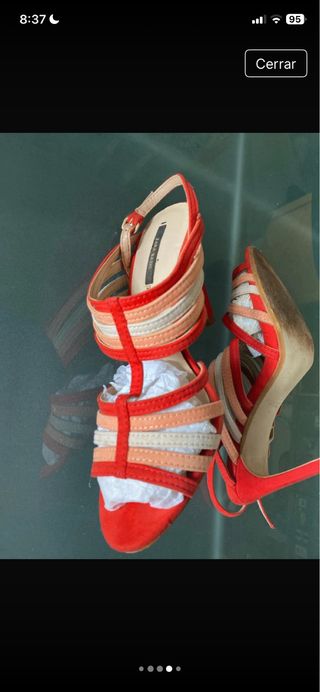 Sandalias Zara espectaculares. Usadas para una boda nada más. Altura, 10 cm pero son muy cómodas. De colores muy vivos como se aprecia en la foto.