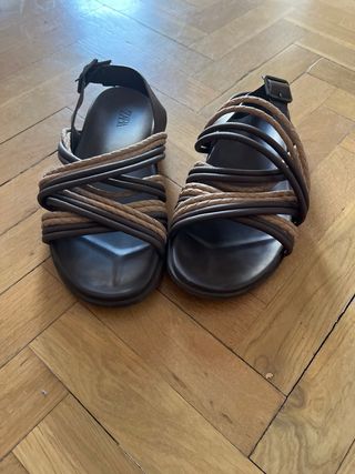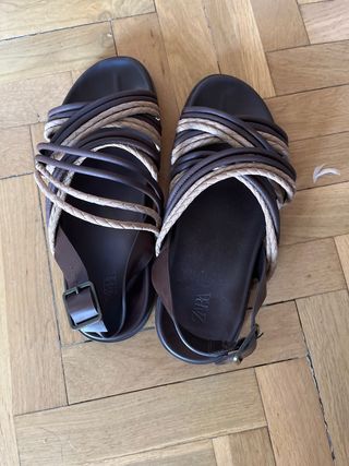 Sandalias planas de Zara con diseño trenzado. - Talla 37. - Color marrón. - Poco uso.
