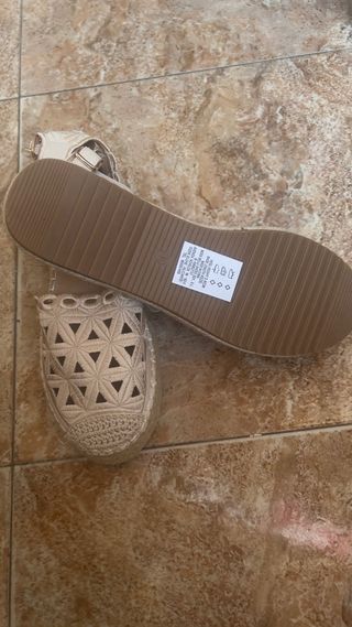 Sandalias beiges, puestas dos veces pero se me resbalaba el pie y me apretaban en el tobillo. Aconsejable para gente que no tenga el tobillo muy ancho.