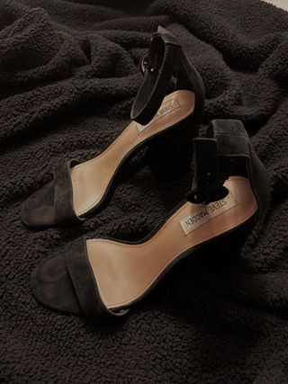 Elegantes tacones de la marca Steve Madden. - Diseño de tira al tobillo. - Tacón grueso. - Material tipo ante.
