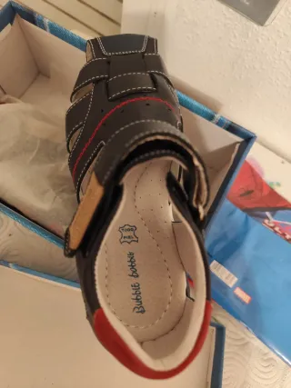 Sandalias de la marca Bubble, perfectas para los más pequeños. - Diseño abierto con tiras. - Cierre de velcro. - Detalles en color rojo.