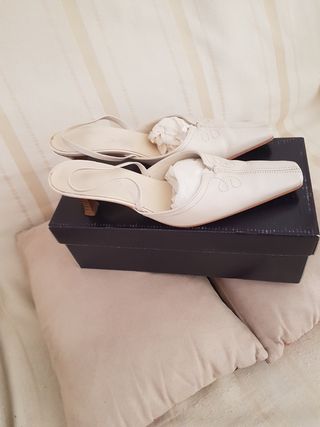 Elegantes sandalias de piel con un diseño destalonado y tacón medio. Poco usadas - Material exterior de piel. - Tacón de aguja.