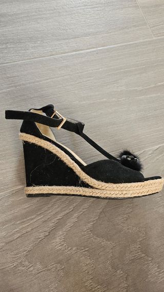 Muy comodos, ligeros, preciosos - Material exterior en ante negro. - Plataforma y tacón en acabado imitación yute beige. - Cierre con cordones negros. - Punta abierta.