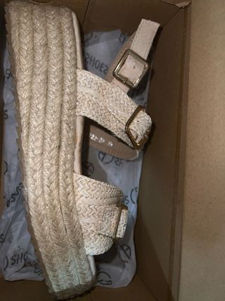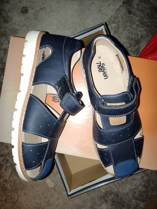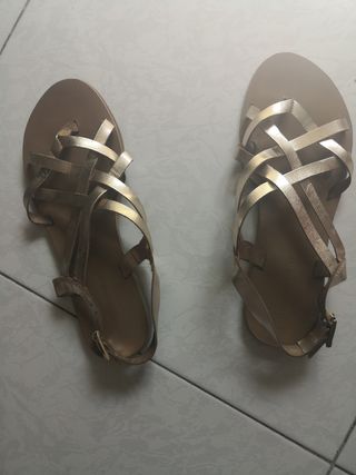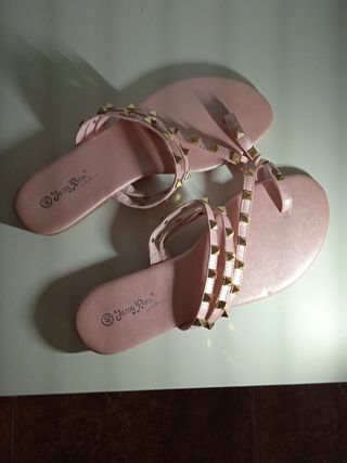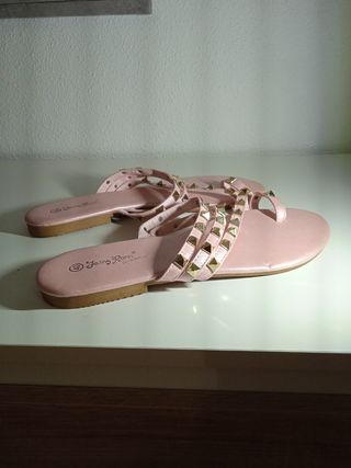 sandalias nuevas. Suela super blanda, suave y de muy buena calidad. Se dan entregan en su caja. No las he llegado a usar por no ser mi estilo. Mi numero de pie es un 37 y me están justas. Para talla 36/37. Costaron 25,99€