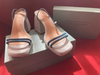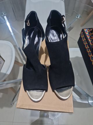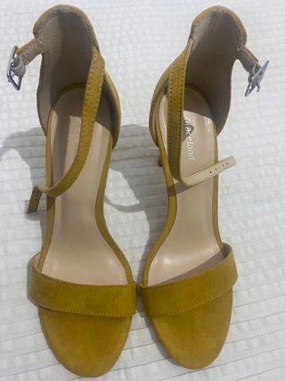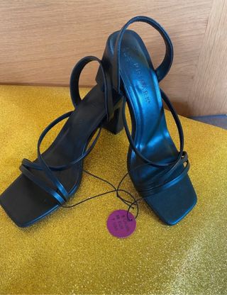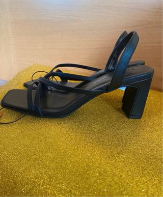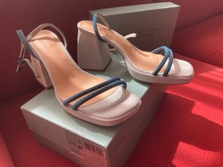 Elegantes sandalias de tacón con tiras. Las compré el año pasado en temporada de verano, solamente las he usado una vez para una boda. Características: - Diseño de punta cuadrada. - Tiras finas en contraste.
