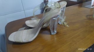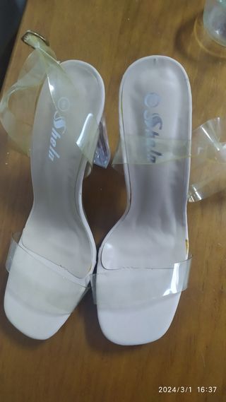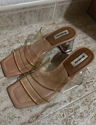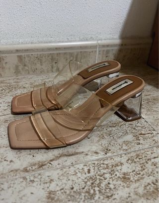 Sandalia de tacón transparente , talla 35 , de Stradivarius , usadas una vez.