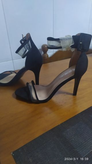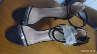 Sandalia tacón talla 38 color negro, tacones muy elegantes y cómodos. TOTALMENTE NUEVO A ESTRENAR CON ETIQUETAS.
