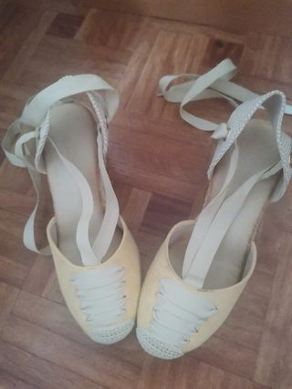 Cuñas color amarillo clarito, puestas tres veces, bien cuidadas. N° 37, se pueden ver y probar.