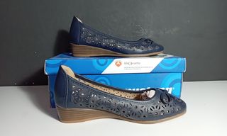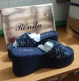 Sandalias azules de plataforma de la marca Renda, talla 38. SIN ESTRENAR. Las vendo porque me equivoqué de talla y se me ha pasado el periodo de devolución. - Diseño con detalles brillantes. - Plataforma cómoda y con estilo. - Perfectas para el verano.