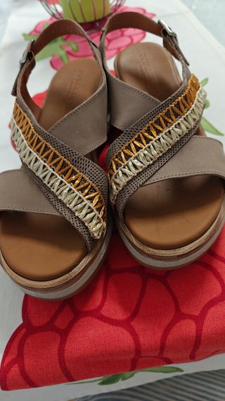 preciosa sandalia en tonos marrones sin estrenar talla 37,la vendo porque me queda peueña