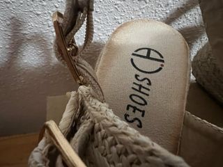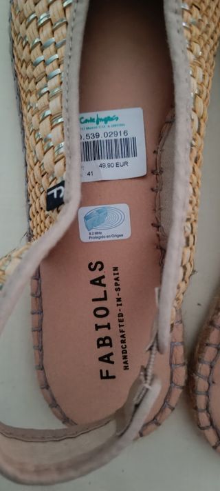 Elegantes sandalias de la marca Fabiolas, perfectas para cualquier ocasión. - Diseño tejido en color beige. - Tira trasera ajustable. - Suela cómoda para el día a día. Solo me las puse una vez en casa, tengo los pies muy delicados y deformados y al andar me molesta, se pueden ver en las etiquetas que están sin rizar.