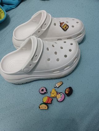 Crocs Blancos con Estampado Multicolor Talla 32/33