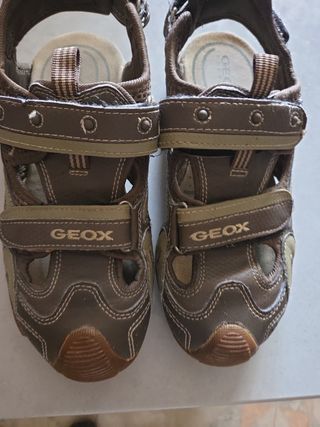 Sandalias Geox para niño, en color marrón. Son dos sandalias, ideales para los meses de verano. Están en buen estado, casi sin uso. -Cierre de velcro. -Suela de goma. -Talla 37 Se puede recoger y probar en Murcia o Alcantarilla.