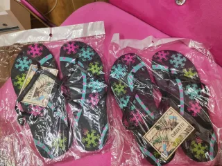 Par de chanclas de dedo con un diseño llamativo. - Estampado de copos de nieve en varios colores. - Tiras en contraste. - dos tallas disponibles 36- 37 - precio por unidad