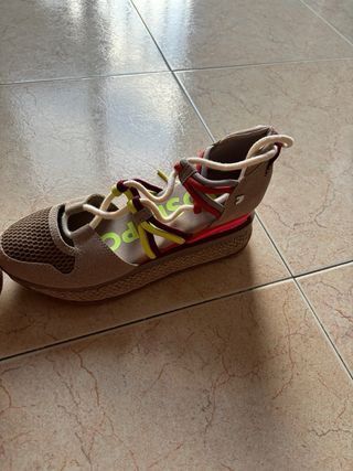 Sandalias de cuña con plataforma, perfectas para el verano. Son preciosas y están nuevas sin estrenar,en su caja - Diseño multicolor con detalles tejidos. - Cierre de hebilla. - Suela de esparto.