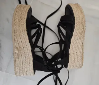 Sandalias de cuña con diseño de tiras y cordones para atar en piernas. Usadas en dos ocasiones.
