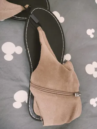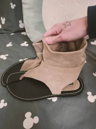 Sandalias planas de estilo moderno con detalle de cremallera. - Material exterior de ante. - Diseño tipo pala. - Cremallera frontal.