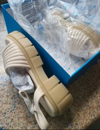 Sandalias de plataforma de la marca Mustang en color beige. Diseño moderno y cómodo. Tiene talla 36 pero es más grande, como un 38 (ver medida en imágenes) Nuevas en su caja. - Tira ancha en la pala. - Suela gruesa con plataforma.