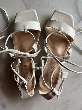 Sandalias planas de tiras blancas de la marca Shein. - Diseño con tiras que se anudan al tobillo. - Punta cuadrada. - Suela cómoda para el día a día. a estrenar