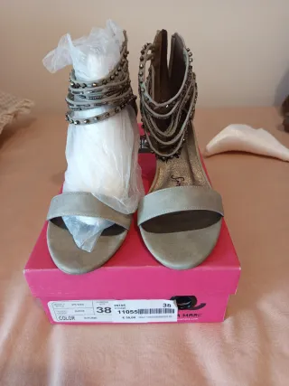 Elegantes sandalias de tacón con un detalle de lazo. - Tacón fino. - Tira con hebilla ajustable. - Diseño abierto. número 38 con la Filis y las tapas nuevas sin Estrenar