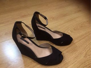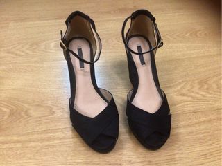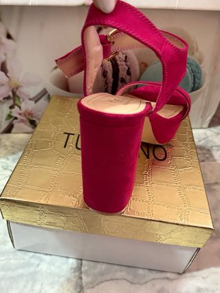 Elegantes sandalias de tacón con un diseño moderno. 10 cm. Valdrria para un 35 de pie también. - Material exterior de ante. - Cierre de hebilla en la tira del tobillo. - Plataforma delantera para mayor comodidad. 2'5 cm