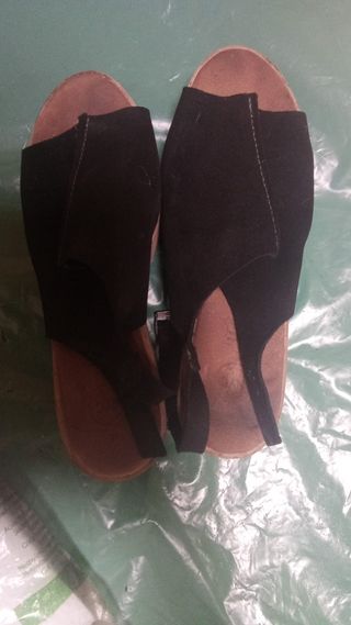 Sandalias cuña Stradivarius negras tipo ante talla 37 un solo uso tacón 11'5cm plataforma 3cm en perfecto estado