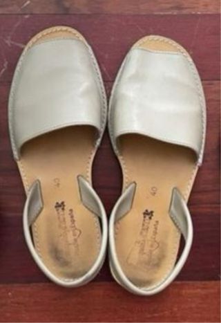 Vendo un par de menorquinas de piel, en color beige. Hechas en España. Están en buen estado, servirían para un pie que calce 40-41. Aunque es talla 40.