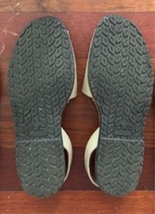 Vendo un par de menorquinas de piel, en color blanco roto. Hechas en España. Están en buen estado, talla 39 pero servirían para un pie que calce 40-41. Precio: 10€