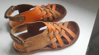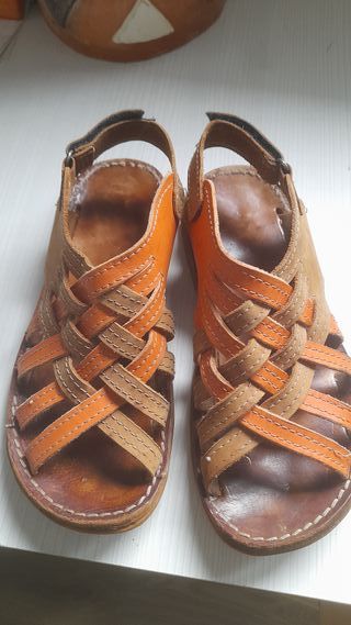 Las sandalias son de cuero marrón de la marca española Yokono. Están fabricadas en piel (vaquetilla), curtida de forma natural sin componentes químicos, usando tintes vegetales. Material: Piel vacuna natural. Sandalia de tacón ancho y plataforma con tiras cruzadas y cierre de hebilla en el tobillo. La marca prioriza el confort, usando plantillas antideslizantes para un buen agarre del pie. Estilo versátil,para el día a día o celebraciones. Puestas 1 vez.