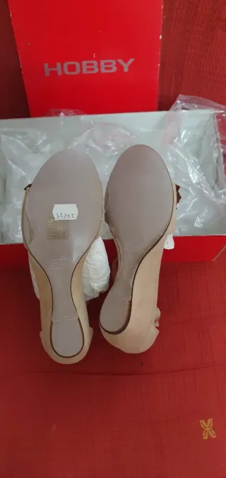 Sandalias de la marca Hobby en tonos beige y marrón, con un bonito detalle floral en la parte delantera. - Diseño abierto. - Cierre de hebilla. - Con un poco de plataforma. - La suela tiene un pequeño fallo, como se aprecia en la segunda foto, de ahí su precio tan económico. Su precio original se puede ver en la foto 8 y 9 (108 €). - Son nuevos sin estrenar.