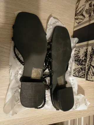 Sandalias planas de la marca Parfois. - Diseño con tira en forma de V y detalle metálico dorado. - Tira fina para el dedo. - Cierre con hebilla ajustable. - Solo 1 solo uso