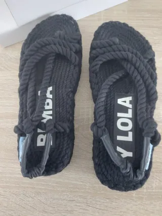 Sandalias de la marca BIMBA Y LOLA en color negro, Originales. - Diseño con tiras de cuerda. - Detalle de logo en la plantilla. Poco Uso, conserva su Caja