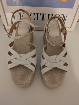 Sandalias cuña H&M blancas y beige