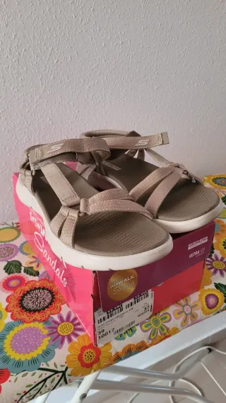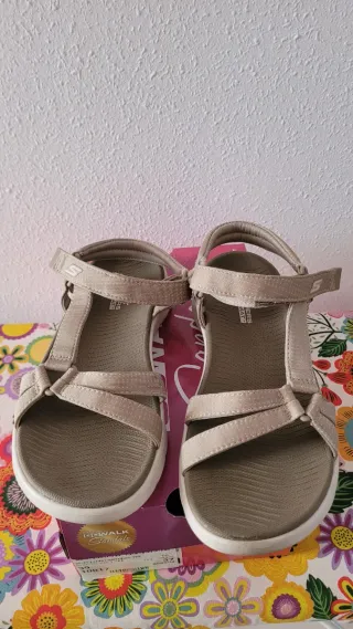 Sandalias Skechers Beige/Gris Talla 39 Nuevas