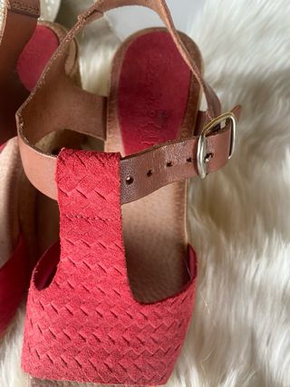 Sandalias de la marca sfera para mujer, en color rojo y a estrenar. - Diseño tipo espadrille. - Cierre con tiras. - Suela de esparto.