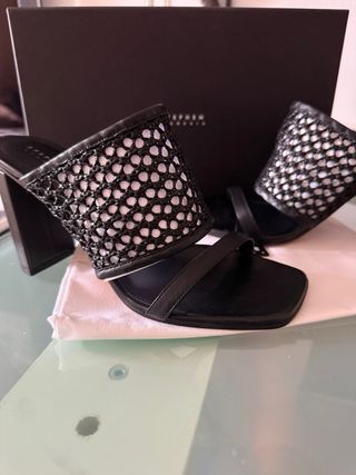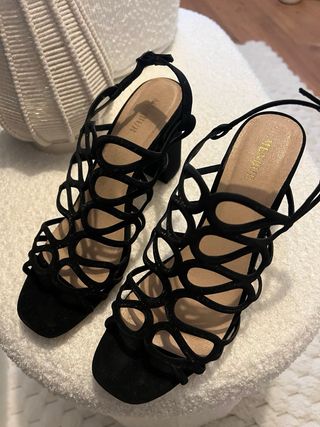 Sandalias tacón negras con brillo
