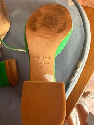 Sandalias de la marca GADEA en color verde. - Diseño con tiras y detalle festoneado. - Tacón cuadrado. - Cierre de hebilla.