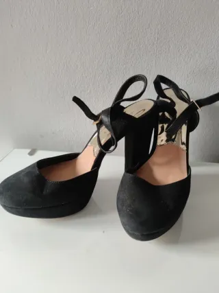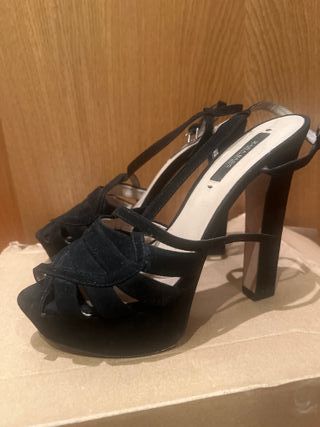 Sandalias Zara Tacón Plataforma Ante Negro