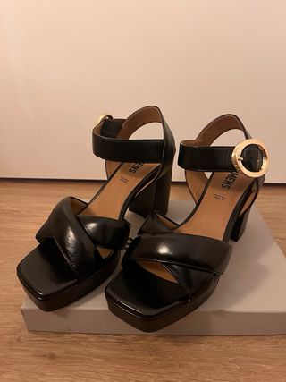 Sandalias de plataforma nuevas, sin estrenar. - Diseño de tiras. - Suela gruesa. - Punta cuadrada.