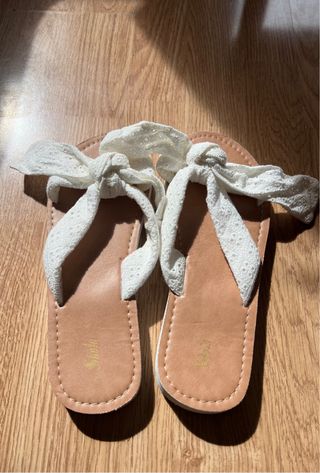Sandalias planas blancas con lazo de encaje