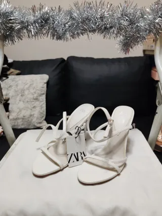 Sandalias tacón Zara blancas